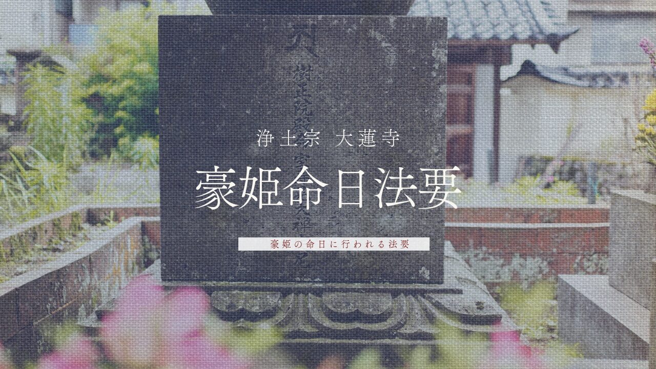 豪姫命日法要 2024年5月23日 豪姫と秀家 戦国の夫婦を結んだお念仏 大蓮寺で偲ぶ命日法要 「豪姫命日法要」とは、前田利家の四女で宇喜多秀家の正室であった豪姫の命日(5月23日)に行われる法要です。